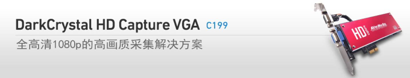 | DarkCrystal HD Capture VGA 支援1080p Full HD 解析度之影像撷取,其具备VGA 输入与输出介面,能连接各种VGA 讯号输出装置。此外,提供包括多种常用应用程式的SDK,能有效帮助开发者或系统整合商提升开发效率,同时内附AVer MediaCenter 软体,能直觉化地预览与撷取HD影像。 |