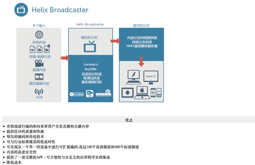 迄今为止,广播运营商和企业还必须在高性能的媒体编码和分发技术方面投入大量的资金。 Helix Broadcaster是RealNetworks最新推出的,集成了最好的编转码核心和流媒体服务器的硬件产品。通过使用Helix Broadcaster,可实现在一个统一的系统中,同时进行编转码和分发超高品质的直播和点播媒体内容。Helix Broadcaster运用顶尖科技,在IPTV、OTT、CDN 等的应用中表现尤为突出。通过使用先进的技术,这一系统延时极低,确保了内容的高度安全性和高效分发,使企业更具市场竞争力。 |