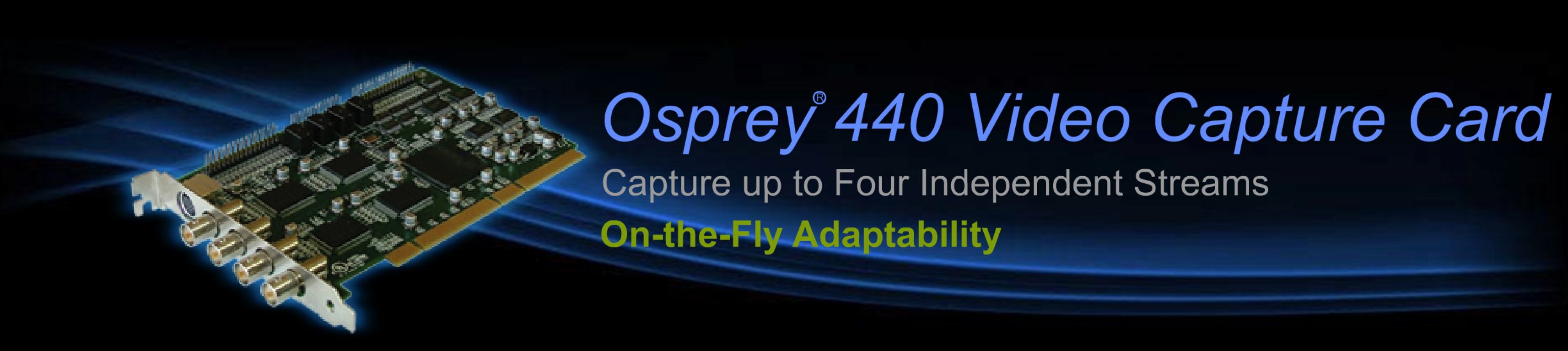 | With the capability to simultaneously capture four independent channels of audio and video, the Osprey® 440 PCI-X™ capture card is a good choice for broadcasters and government agencies. |