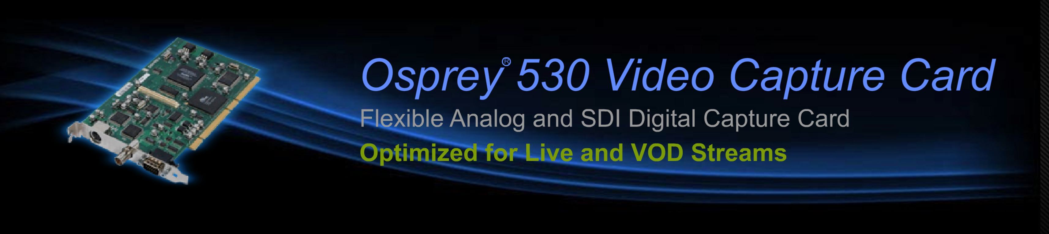 | More than 400 K Osprey cards out in the worldwide marketplace are being used in a wide variety of broadcast, commercial and industrial applications. You’ll find Osprey 530 capture cards in mission-critical applications throughout the world. |