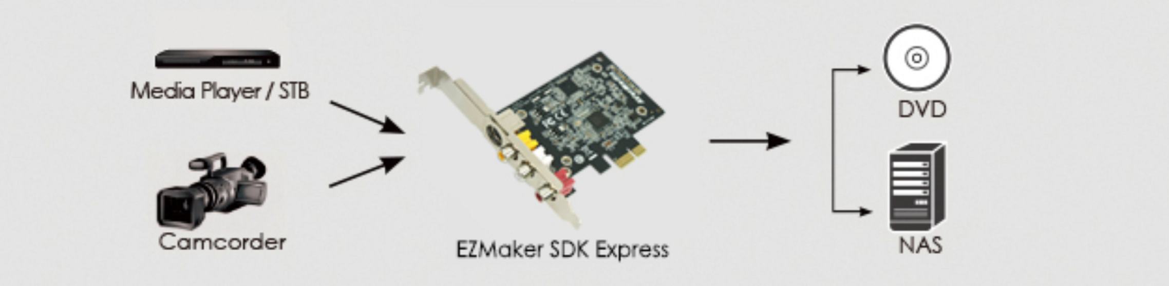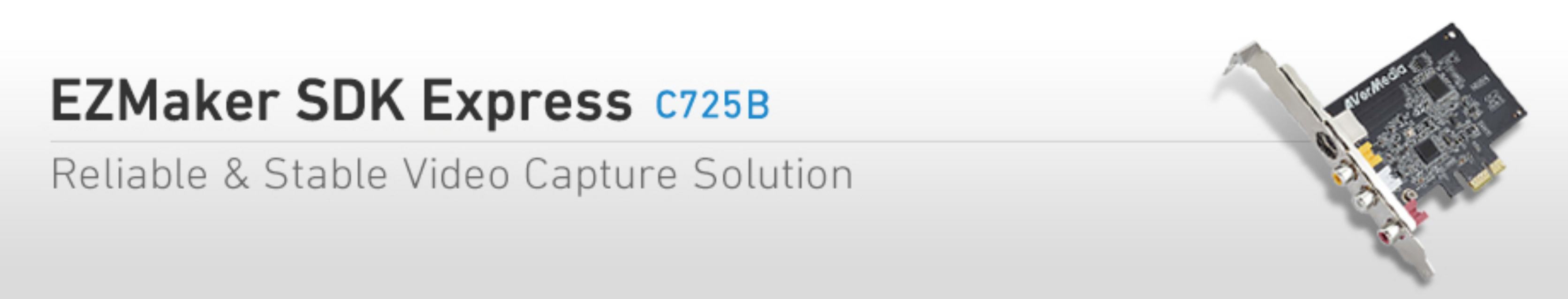 | AVerMedia EZMaker SDK Express guarantees fast response and solid performance with its advanced hardware design and customizable software development kit while promising ease-of-use user experience. Featuring S-Video, composite and stereo audio inputs, EZMaker SDK Express allows you to record videos from various video equipment and digitize the analog videos with optimal quality. |