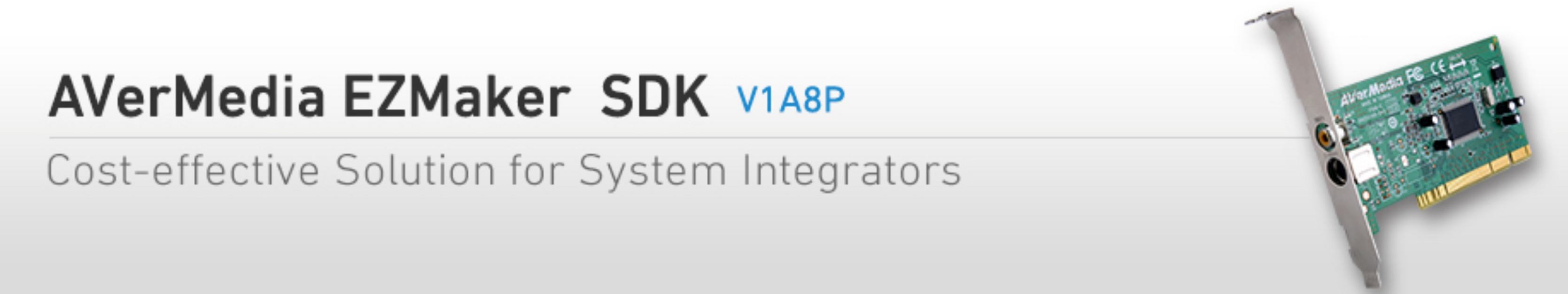 The AVerMedia EZMaker SDK is a video capture card which has S-video and composite inputs. The accompanying software development kit provides the often-used functions to help developers or system integrators complete their task easily and efficiently. Even better, it is also compatible with major programming languages like Visual C++ and Visual Basic! |