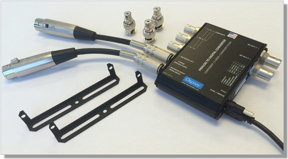 - Included Accessories: Lockable USB Power Cable, 3 BNC to RCA Adapters, 1/4" to RCA Stereo Audio Adapter, Mounting Brackets