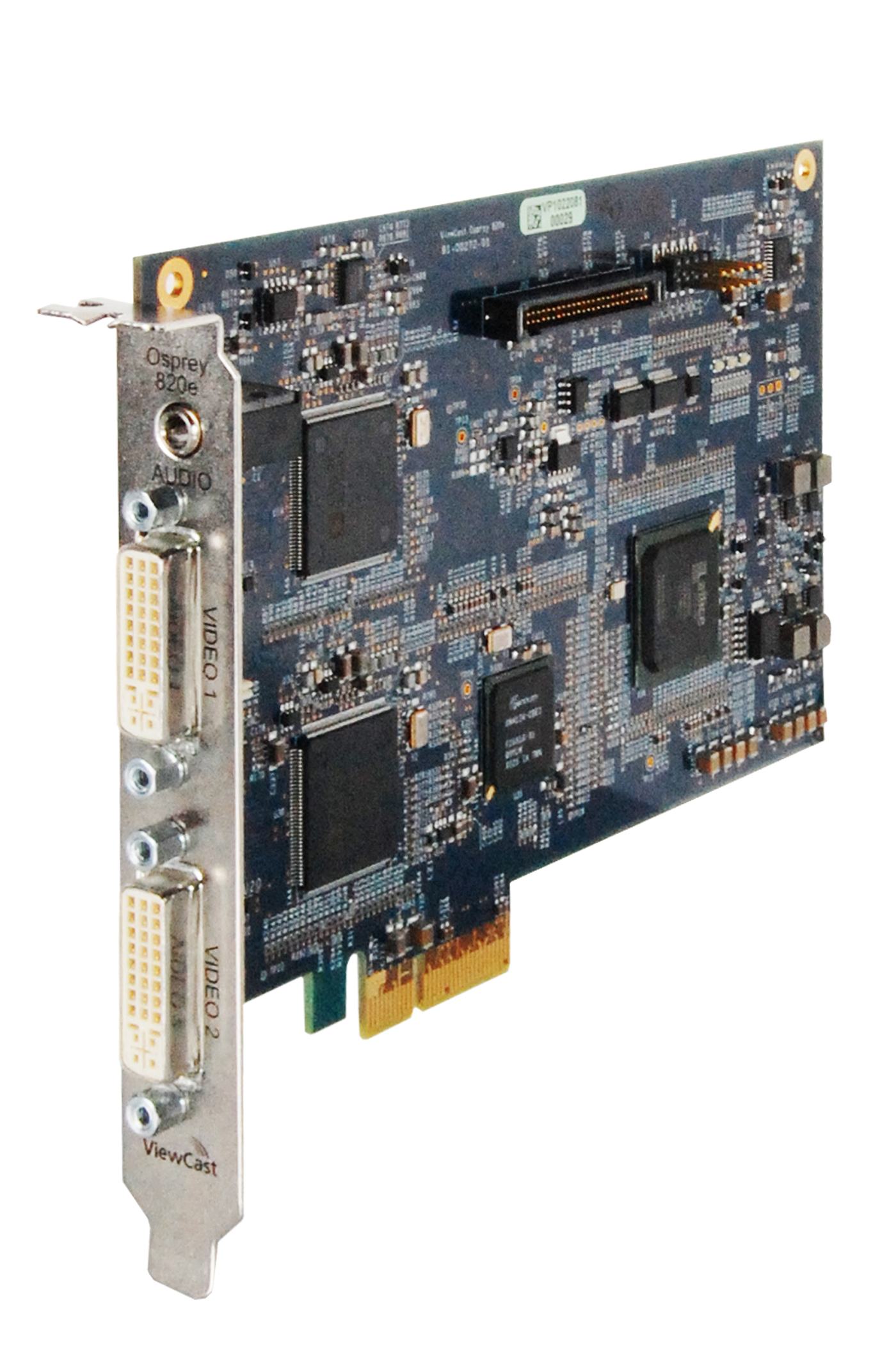 | The Osprey 820e continues the strong tradition of high-quality streaming performance. The latest video capture card now lets you add audio and video to a traditional graphics interface making it an ideal solution for lecture capture and more. This dual input card can ingest SD or HD analog video as well as VGA HDMI and DVI. | |